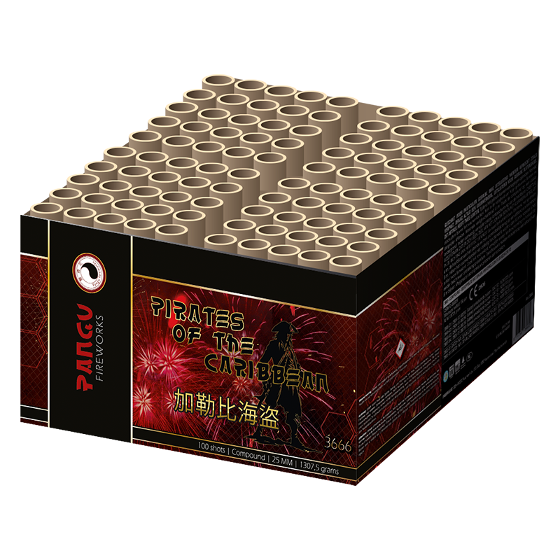 Pirates of the Caribbean 100 shots 25mm Goedkoop vuurwerk kopen bij Vuurwerkwinkel Dordrecht