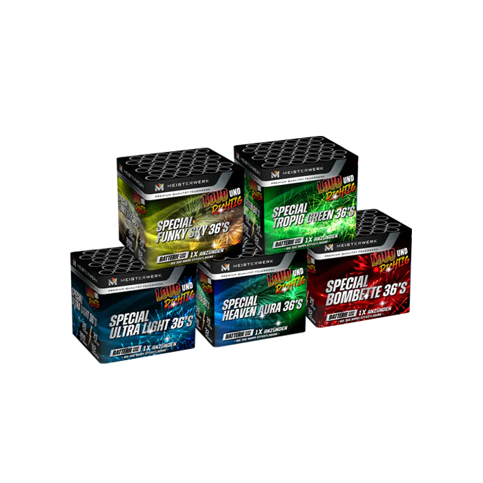n5x een 36 shots cake met prachtige effecten. Maximaal gevuld en extra voordelig!